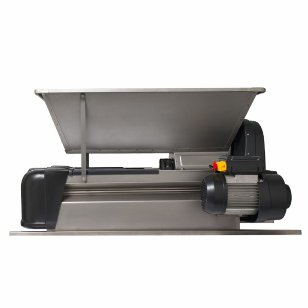 Grifo's grape destemming and granulation machine model, all parts of which come into contact with food are made of stainless steel. It is very easy to use and durable enough to serve for many years. Its powerful motor operates all parts of its mechanism without any difficulty. The gears and cylinders are made of industrial plastic to guarantee durability and reliability and to ensure silent operation. In addition, thanks to special supports, the crushing cylinders can be adjusted by a few millimeters. The entire hopper is filled with grapes and the machine carries the grapes to the areas where it will break and separate the stem with the spiral in the hopper.