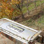 The tractor mower does not damage the drip pipes, does not puncture or leave any marks. However, the tractor scythe can change the location of the drip pipes or get tangled in the machine drum. For this reason, it should be used when the inside of the pipes is filled with pressurized water or when they are tense on the ground in order to make the drip pipes heavier.