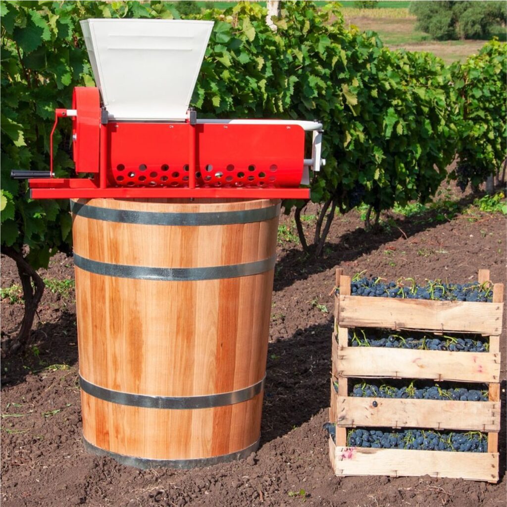 Kadmec DG07 Manual Grape Stem Remover separates grapes from the cluster and breaks the grapes to make them ready for pressing or fermentation. It is a machine designed for hobbyists.