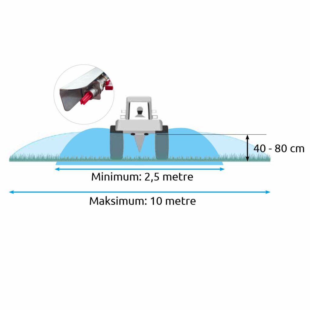 E-MailKadmec Herba Weed Spraying Attachment is a herbicide (weed killer) attachment that can be easily mounted on all spraying tanks. In addition to herbicide applications, it can be used for plant protection products, foliar fertilizers, and similar applications. With Herba, it is possible to apply weed killer with a working width of 2.5 - 10 meters. The Herba Weed Spraying Attachment, used with a pump pressure of 2 - 5 bars, sprays the herbicide without dusting. The herbicide descends like a very fine rain and disperses homogeneously. Specially produced nozzles cut fine particles to prevent drifting. Thus, it is possible to spray without contacting the leaves of trees.