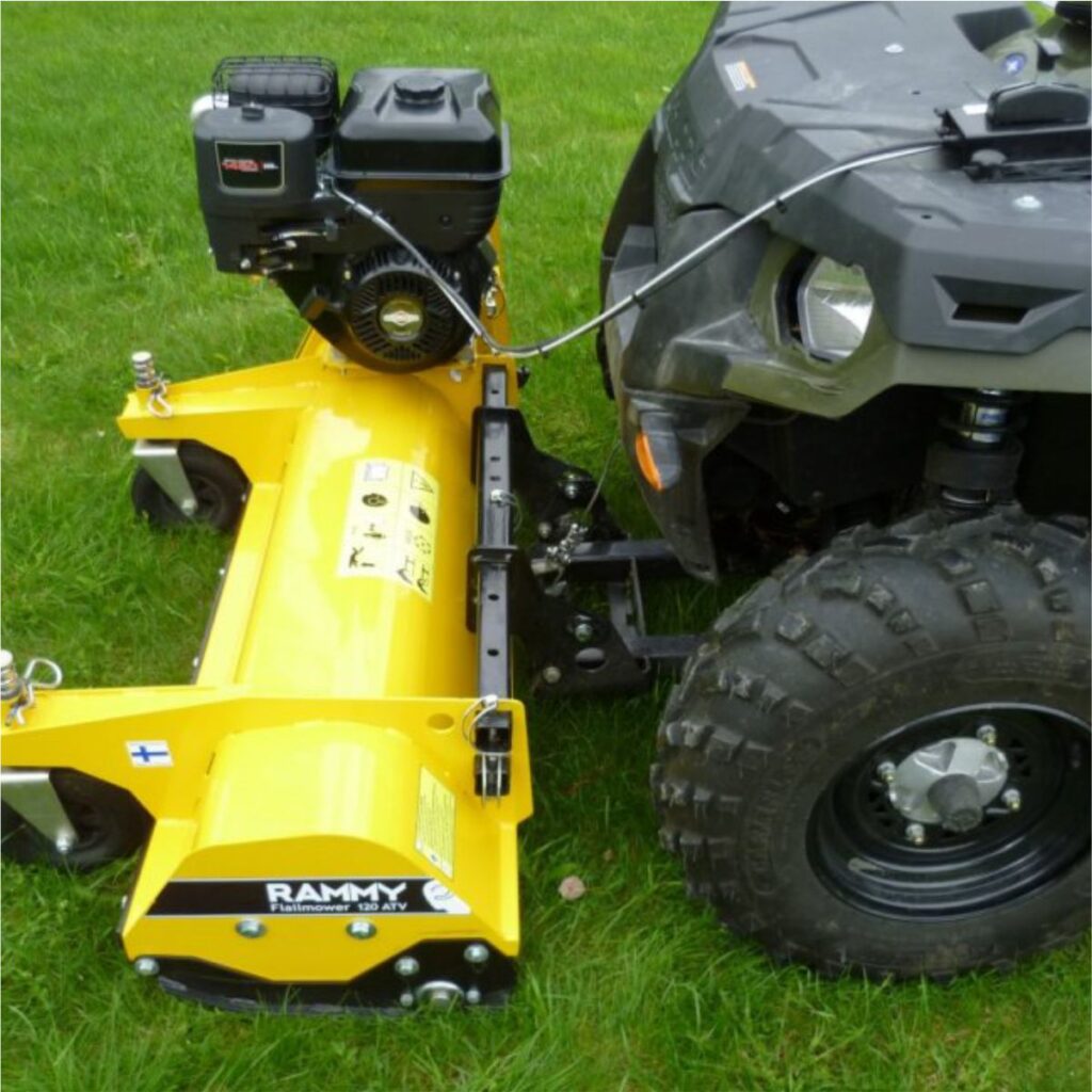 Standard mowers are not always enough! RAMMY 120 ATV Mower is a fast and powerful mower compatible with all 4x4 ATV engines. RAMMY mower provides effective cutting and shredding in hazelnut garden bottoms, roadsides, bush areas and weed areas. It is designed as lightweight, compact and self-powered in order not to strain ATV engines while mowing grass and is completely manufactured in Finland.