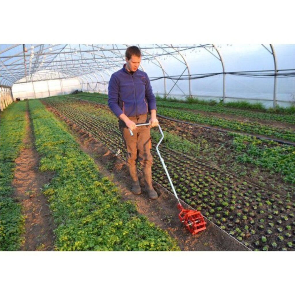 Roller Tillers are a clever weed control technique that Belgian farmers have been using for over 30 years in vegetable growing. They allow for much more area to be tilled with much less effort than with motor-driven machines or hand tilling. It is very easy to till narrow areas with roller tillers...