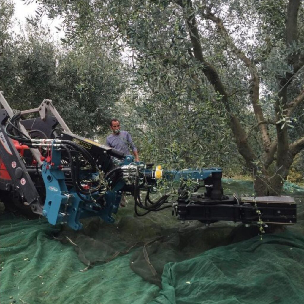 The Spedo Fruipick A hydraulic tree shaking machine model is designed to operate by attaching to tractor front loaders. It is suitable for harvesting tree products such as olives, walnuts, almonds, cherries, plums, etc. The Spedo Fruipick A tree shaking heads, with their unparalleled maneuverability, are designed to easily grasp trees even on inclined, difficult terrains and to shake them without damaging the tree bark.