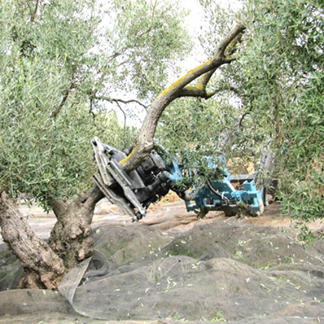Its extendable system reaches the tree trunk or main branches from up to 7 meters away at desired angles, eliminating the need to approach each tree individually. It can harvest 2-3 trees while the tractor remains stationary.
