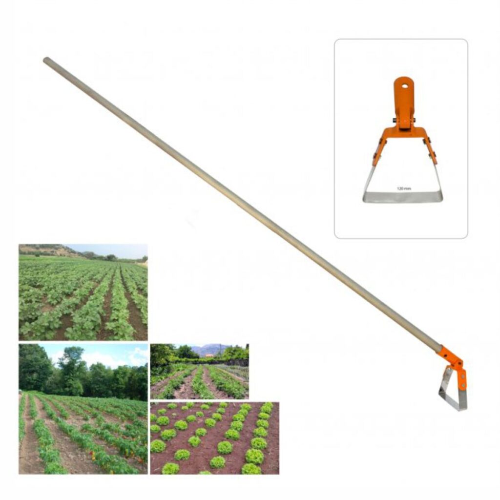 Kadmec stirrup hoe is a lightweight, easy-to-use weed control tool designed for vegetable growers and those who struggle with weeds in difficult areas in parks and gardens. It provides effective hoeing by cutting, not hitting the soil. There is no need to hit the soil in stirrup hoes. It provides easy hoeing and weed control, just like sweeping the ground with a broom. In this way, one person can hoe much more areas with much less fatigue.